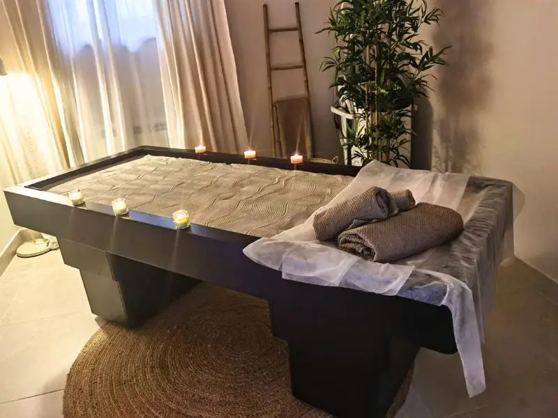 - Terapeutska masaža: Usmerena 45-minutna sesija koja je namenjena ublažavanju bolova u mišićima i poboljšanju pokretljivosti. Idealna za one koji traže ciljano olakšanje, ova opcija koristi terapeutska svojstva toplog peska za brz, ali efektivan tretman.